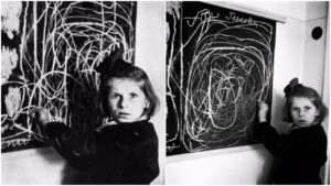 A girl who grew up in a concentration camp draws a picture of “home” while living in a residence for disturbed children, 1948 Strangeness