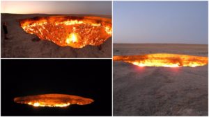 Darvaza Gas Crater also known as “The Door to hell” is a fiery crater burning since 1971 Abandoned Spaces Strangeness
